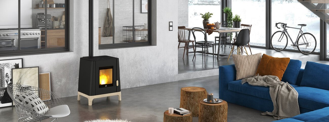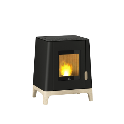 The air vents and wood finish create an elegant look and a unique style for this stove. Choose from 2 finishes to suit your interior: matt black or corten paint. The JØTUL PF 501 stands out with its slightly trapezoidal design and its ideal size for "small" interiors or installation in an open fireplace. Thanks to its integrated T-connector, this appliance can be installed as close to the wall as possible, with a centred vertical flue outlet. Its technical advantage is its cast iron heating element and ceramic ignition resistor. When it comes to aesthetics, you can stay cool with a matt black paint finish, or be daring with a new Corten colour finish!
