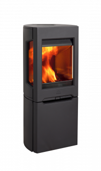 Jøtul's F 167 log burning stove is part of the F 160 series which consists of five main variants, with or without side glasses and with different bases and features. The Jøtul F 167 woodstove is characterised by the large side glasses and the elegant placement on top of a pedestal which with time has become an award-winning signature design for Jøtul. You can place a top made from soapstone on this stove. This will provide extra heat retaining capacities and a slightly different look. The wood stove is designed for modern living and is suitable for low effect heating. It burns at an optimal level even at 3kW.